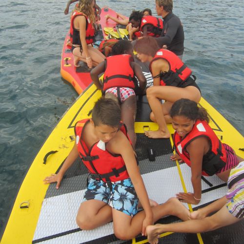 🛶 Sup-Squatch, 1 séance sur le nouveau SUP-SQUATCH, grand stand up gonflable de 12 places, jeux et joutes le long des digues de Socoa, chasse aux crabes et aux indices ! Moniteurs Diplômés d’Etat d'Atlantic Pirogue. Savoir nager est OBLIGATOIRE pour ces activités. Prévoir de vieilles chaussures allant dans l'eau.