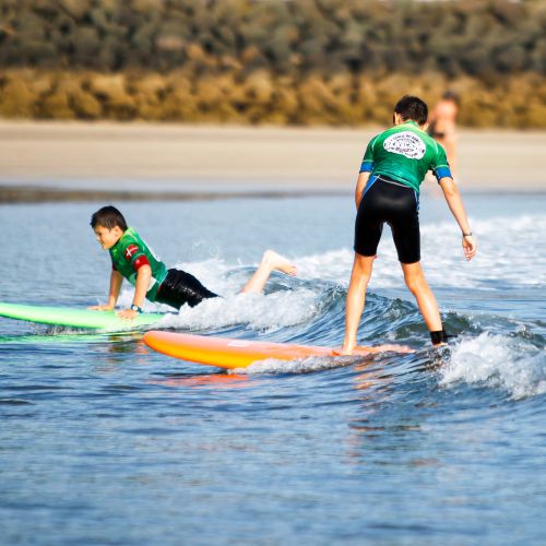 🏄♂️ Surf : 7 séances de 2h de pratique dont 1h30 dans l'eau, sur des planches type "softboards" avec ailerons souples. Les séances se déroulent sur la célèbre plage d'Hendaye au fond très plat qui offre des vagues faciles pour l'initiation comme pour le perfectionnement, et qui permet de surfer où l'on a pied.