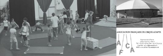 L’Association Française de Cirque Adapté « AFCA » a été créée le 16/06/1993 à Aire sur l’Adour pour développer le Cirque adapté, concept né au sein de la clinique Jean Sarraih qui accueille de jeunes patients souffrant de troubles psychiatriques et qui associe soin et études. Le cirque adapté est un outil de médiation à visée éducative et/ou thérapeutique où les activités circassiennes sont réfléchies en concertation avec l’équipe professionnelle qui accompagne le public accueilli (soignants, enseignants, éducateurs, animateurs…) et sont un support ludique et attractif pour favoriser la confiance en soi, le dépassement, l’effort et le faire ensemble… L’AFCA propose des ateliers en direction des publics scolaires, de tous établissements spécialisés ou de soin. L’AFCA est également organisme de formation et lieu de diffusion de spectacles de cirque actuel. Une équipe de10 bénévoles et 5 salariés gére l’association.