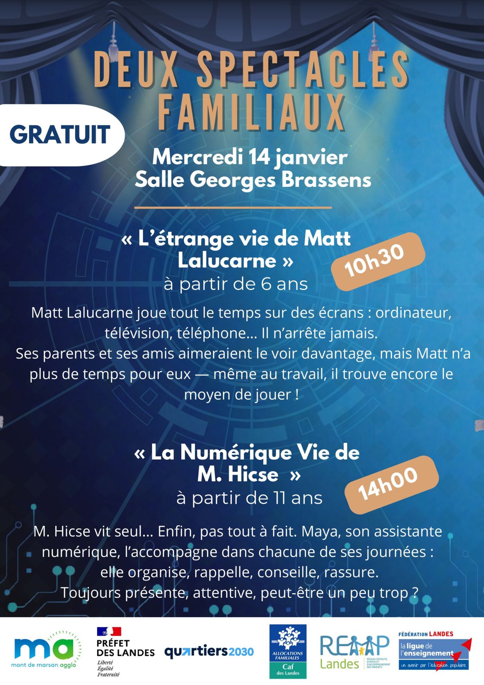 Dans le cadre du REAAP-CAF, la Ligue de l’enseignement en partenariat avec la Politique de la ville, propose deux spect…