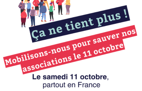La campagne de mobilisation s’inscrit sous le mot d’ordre : « Ça ne tient plus ». Parce-que les rafistolages successifs des politiques publiques ne suffisent plus à financer un tissu associatif qui reste pourtant le premier liant de notre société, les acteurs associatifs sont appelés à se mobiliser massivement dans tous les territoires le 11 octobre, à manifester, se rassembler, conduire des actions auprès de leurs élus, donner de la visibilité et de la voix aux associations.