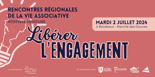 Retenez la date ! Rendez-vous le 02 juillet 2024 pour les Rencontres Régionales de la Vie Associative, le grand rendez-vous des associations de la région et des acteurs qui les soutiennent ! Pour cette 4e édition, le Mouvement associatif Nouvelle-Aquitaine, en partenariat avec la Région Nouvelle-Aquitaine et la Direction Régionale académique à la Jeunesse, à l’Engagement et aux Sports convient acteurs et partenaires de la vie associative à échanger, partager et identifier des leviers pour « Libérer l’engagement », première ressource des associations !